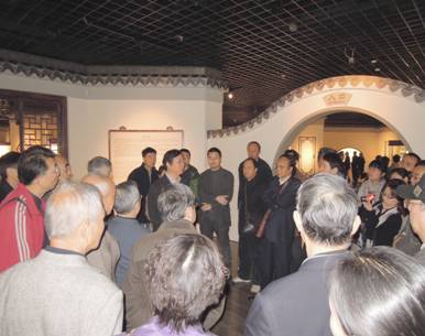 在参观现场,研究会副理事长、上海博物馆陶瓷研究部主任陆明华研究员为大家作了讲解。他首先概要介绍展品的情况,接着,他引导大家按序参观了展品。在每件展品前,陆明华研究员都逐一作了讲解。从这些元代瓷器来历、器型、纹饰、图案,到其中的经典之处、精湛的工艺效果,他不厌其烦地作了认真地讲解。还不停地回答大家提出的问题。会员们一边聆听着陆明华讲解,一边驻足观望,从不同的角度观赏这些难得一见的稀世珍品。偶尔,大家还就一些专业问题进行讨论。大家不仅被这些元代瓷器的珍品所吸引,而且也为我国古代高超的制瓷工艺、内涵丰富的图案、独树一帜的造型而感自豪和赞叹。