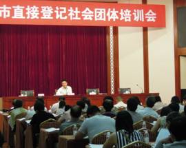 培训会由上海市社团局社团处吴洁民处长主持。会上,市社团局副局长徐乃平首先作了培训动员,并对直接登记的相关工作提出了具体要求。上海市社团管理局登记处曾群处长,围绕着新制定的《上海市社会组织直接登记管理若干规定》、《上海市社会团体分类规定》、《上海市行业协会章程示范文本》等内容,为参会人员作了认真解读。尤其是对“社会团体章程示范文本”中的相关内容及注意点,作了较为详细的解说。上海市社团管理局社团处领导,就社会团体直接登记相关规定、直接登记社会团体日常监管和服务等内容作了进一步辅导和说明。