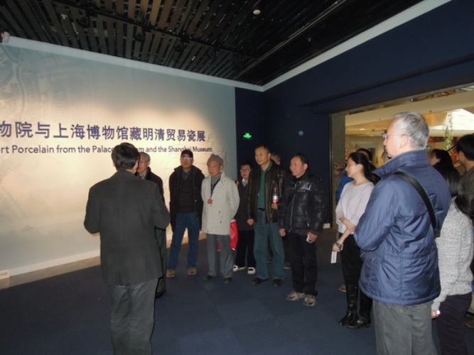 总结会后,在陆副理事长引导下,会员们兴致勃勃地参观了“明清贸易瓷器展。据介绍,这次展览,是由故宫博物院与上海博物馆共同举办的“明清两个朝代的外贸瓷器展览。此次展示的160余件器明清贸易瓷器,主要产自江西景德镇和福建漳州等地。这些瓷器不仅造型各异,而且做工精湛,揭示了当时远销欧美及日本、东南亚一带贸易瓷器精品。在展示厅内,会员们跟随着陆明华副理事长,一边认真听他解说,一边浏览着橱窗里的展品。偶尔,大家还停下脚步相互轻声讨论,或是仔细观赏着瓷器展品,浏览文字说明。会员对明清时期,我国出口到国外的那些精致瓷器赞不绝口,大家深有感触地说:通过这次参观和学习,既了解到当时中国繁荣的贸易景况,也看到了我国明清两代瓷器制作的精湛技艺,更为中国在瓷器制作、绘画艺术等方面的深刻影响而感自豪。(研究会 稿)