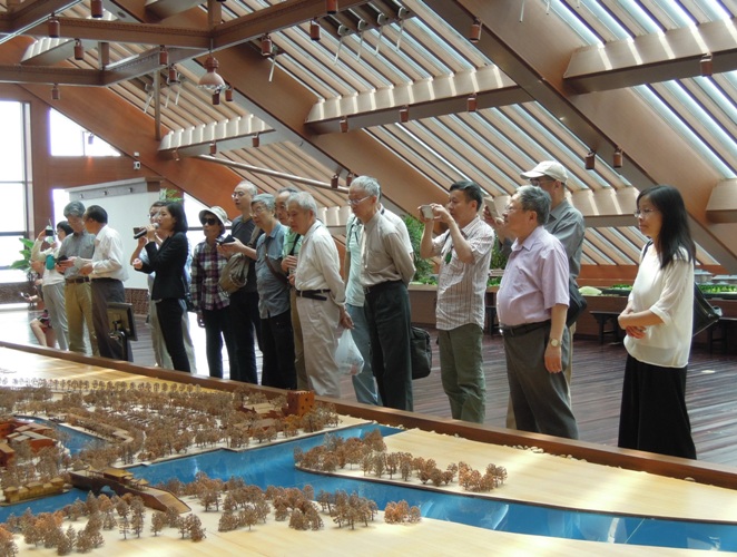 活动当天,正值上海刚进入夏季,闷热的天气,较高湿度,令人颇感有些喘不上气来。但这些并未阻挡会员们参加活动的兴趣。一大早,不少会员不顾路途遥远和道路拥挤,早早来到研究会集中,乘车前往上海松江区广富林古文化遗址公园。上午九点多钟,车到活动地点。在工作人员的引导下,会员们首先进入了广富林古文化遗址公园展示大厅,展示大厅位于古文化遗址的中心处。这座三面环水的建筑,恰似一座矗立在一泓碧水中的灯塔格外引人注目。步入大厅,高雅古典的装饰,气势恢宏、别具一格的建筑,明亮整洁的过道,栩栩如生的立体展示模型,立刻吸引了所有人的眼球。工作人员简单介绍广富林遗址公园的建造过程,以及未来的发展规划。然后播放了有关该文化遗址公园的录像。大型银屏上那一幕幕诱人的图片,浑厚而又精彩的解说词,不仅讲述了文化遗址公园的前世今生,而且也勾勒出一幅幅未来发展的动人画面,令大家赞不绝口,叹为观止。难以置信的是:这里所展现的画面,究竟是文化遗址公园真实的写照,还是未来的规划愿景?带着疑问,一些会员向工作人员进行了咨询。她解释说,所有这些素材与画面,都来自专业人士独具匠心的设计理念,以及现代影视技术的合成。