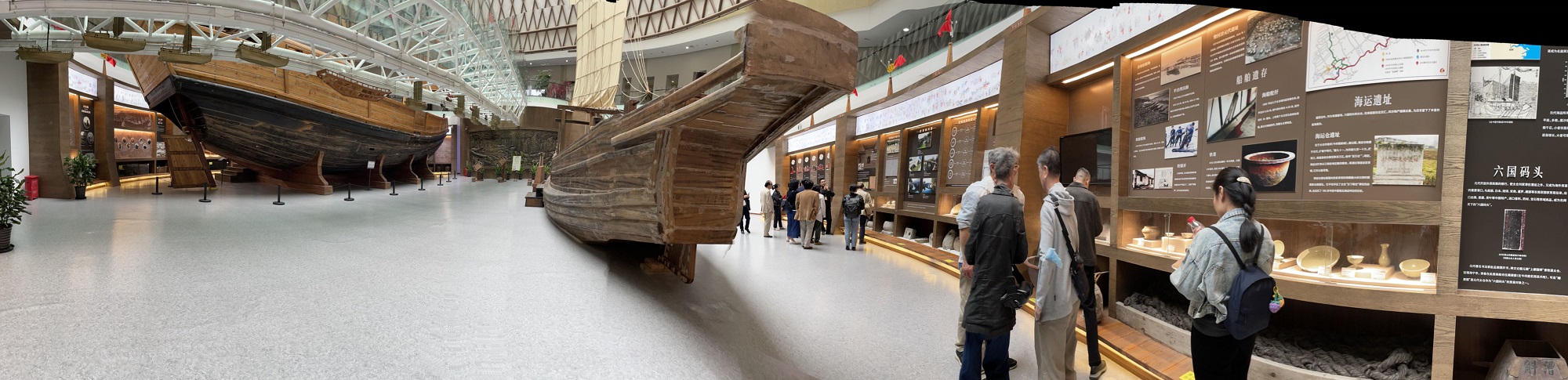徐超老师全程详细介绍了“大元瓷仓—太仓樊村泾元代遗址出土文物”等展览。樊村泾元代遗址出土150余吨龙泉青瓷器,时代集中于元代中晚期,主要器形有碗、盘、盏、杯、洗、高足杯、炉、瓶、荷叶罐等数十类,装饰技法上有刻花、印花、贴花、点彩等,纹饰题材丰富,有云龙纹、飞凤纹、花卉纹、杂宝纹等,另有大量汉文和八思巴文款铭,樊村泾元代遗址的发现,以实物证据生动再现了元代太仓港的繁荣,彰显了古代太仓在国家海漕体系中的重要地位,揭示其不仅为国家运行中最重要的粮仓,亦是“瓷仓”的历史,填补了本地区古代海上贸易相关遗存的空白,为海上丝绸之路研究提供了新材料。