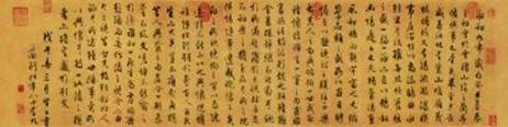 文徵明(1470—1559),祖籍衡山,长洲(今苏州)人,自号衡山居士,人称文衡山,斋名停云馆。书画造诣全面,其诗、文、画无一不精。他虽学继沈周,但仍具有自己的风格。他一专多能,能青绿,亦能水墨,能工笔,亦能写意。文徵明学字是从苏字入手的,后来从李应祯学书。李应祯书宗欧阳询,平正婉和,清润端方,虽非书法大师,却是一位书法教育家。他是文徵明的岳父,又是文徵明的启蒙老师。他除了把学书心得悉数传授给文徵明外,还鼓励他突破传统,自创新格。在文徵明22岁时,李应祯看了他的苏体字,对文徵明说:破却工夫何至随人脚?就令学成王羲之,只是他人书耳!这些话影响了文徵明一生。文徵明在书法史上以兼擅诸体闻名,尤擅长行书和小楷,温润秀劲,稳重老成,法度谨严而意态生动。虽无雄浑的气势,却具晋唐书法的风致。他的书风较少有火气,在尽兴的书写中,往往流露出温文的儒雅之气。也许仕途坎坷的遭际消磨了他的英年锐气,而大器晚成却使他的风格日趋稳健。文徵明的小楷特别精细工整,主要来源于锺繇、王羲之、王献之和虞世南、褚遂良、欧阳询,法度谨严、笔锋劲秀、体态端庄。80岁以后的小楷,尤其见功夫。《行草书兰亭序》写于嘉靖三十七年(1558),是他89岁高龄时的作品,可以看出其炉火纯青的书法造诣和谨严而又多变的书体风格。来源:中国文化报)
